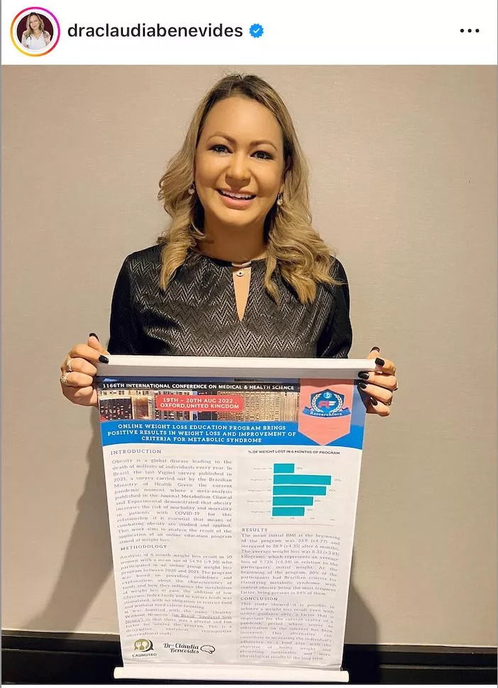 O resultado da metodologia é tão poderoso que eu já apresentei estudos científicos sobre o Saudável sem Neura nos congressos médicos do Brasil e de Oxford, na Inglaterra!