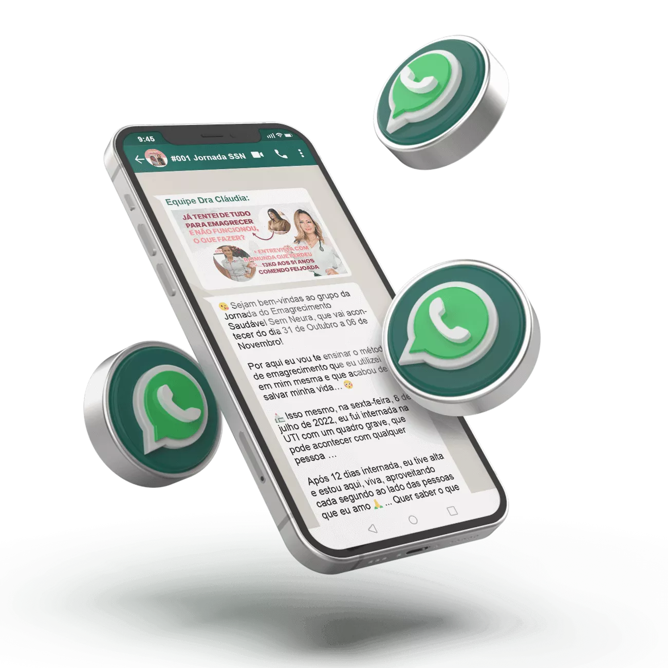 Esse grupo é fechado e silencioso, apenas a Dra. Cláudia e equipe mandam mensagens de avisos importantes, atualizações e motivação para não desistir do emagrecimento.